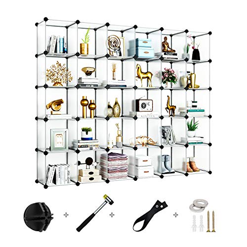 Exclusive GREENSTELL 30 Cubes Storage Organizer,DIY Plastic Stackable Shelves Multifunctional Modular Bookcase Closet Cabinet for Books,Clothes,Toys,Artworks,Decorations (White)